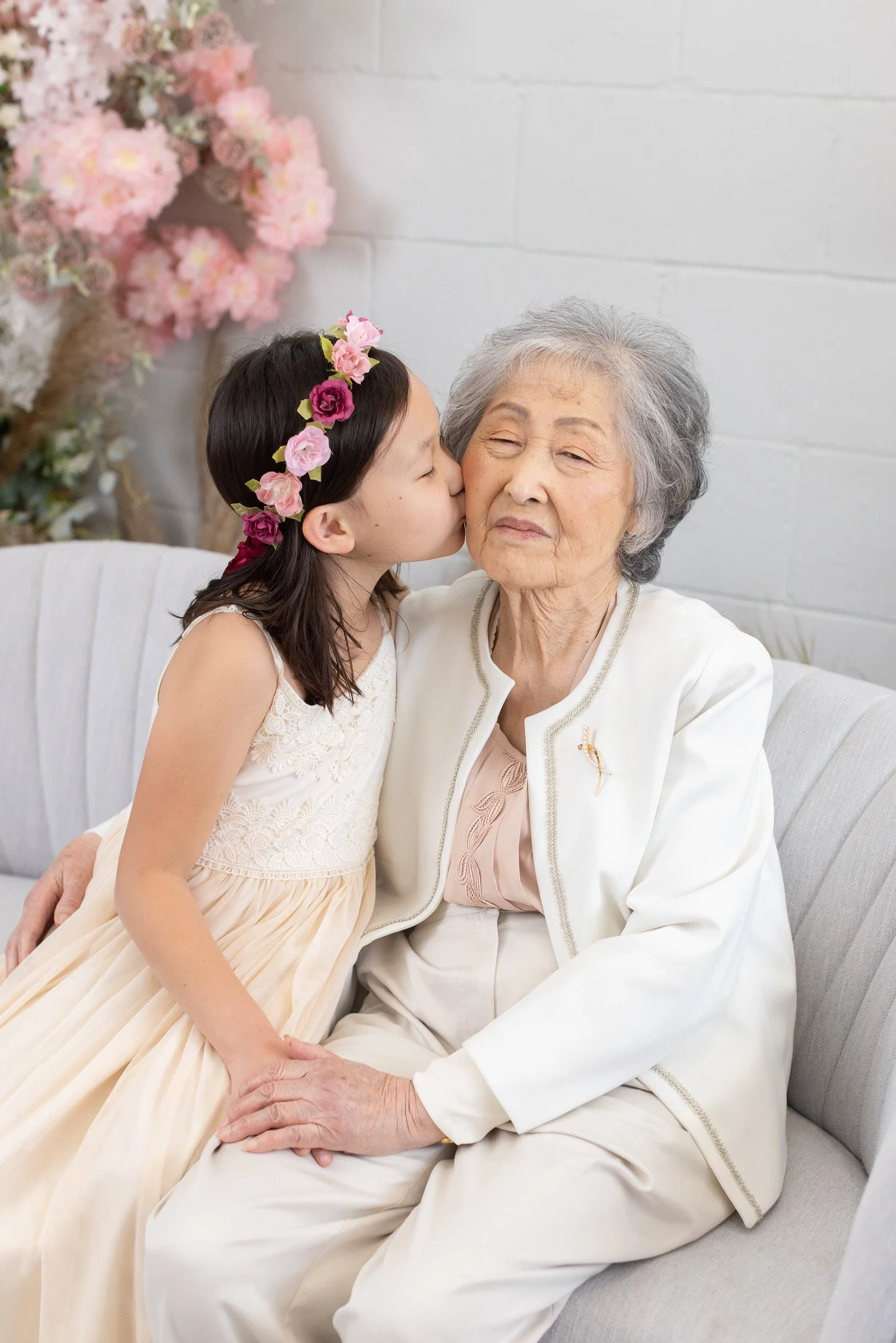 The last shoot, about 2 years ago, I was honored to photograph my grandma in her prized blue kimono, the one she wore to her 50th wedding anniversary so long ago. During that shoot she got her memory back for about 20 minutes. It was beautiful. That was the last time I was able to see my grandma as “Sachiko” instead of the usual blank face dementia version. That was the last time my kids and I got to hold Grandma, laugh and cry with her and just be in the moment.